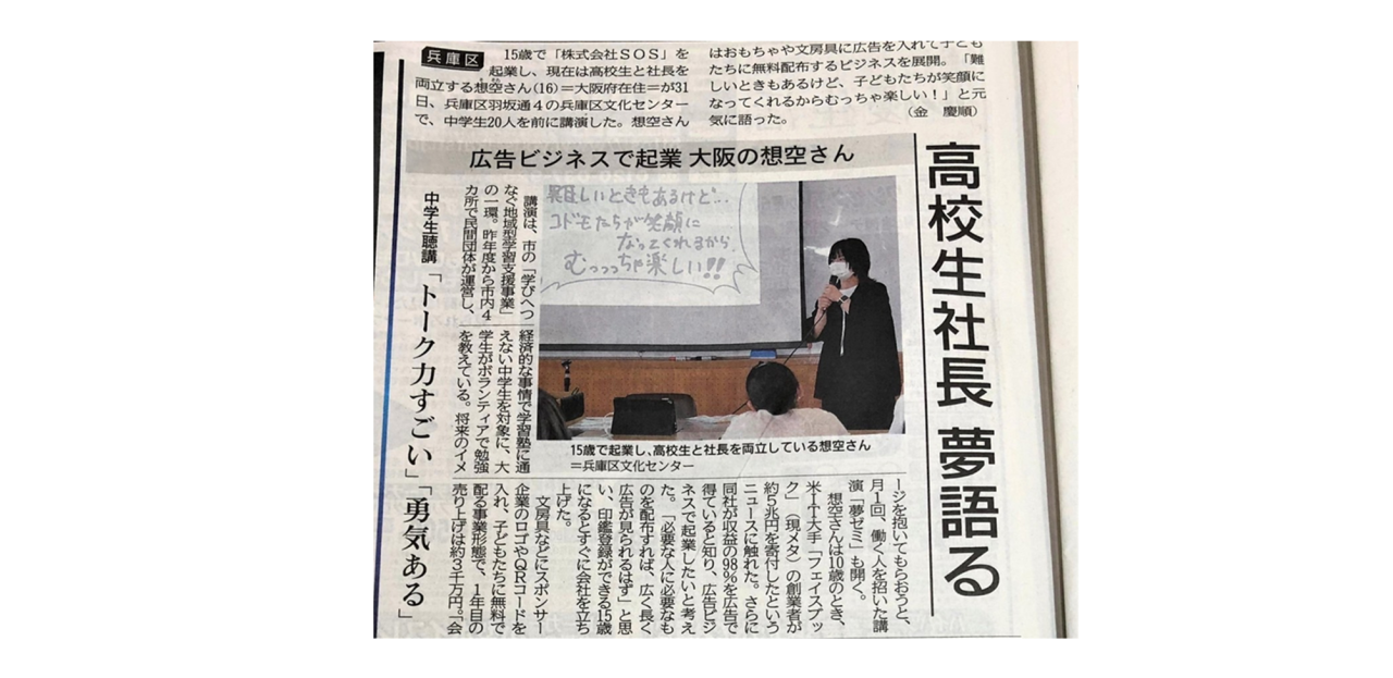 の「注目の起業する10代」に取り上げて頂きました!新規事業のこども体験型広告「ヘリコプター体験広告」の特集でした。